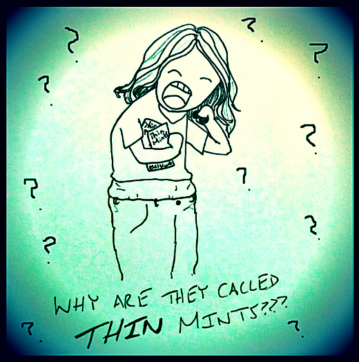 Why are they called “Thin” Mints? February 22, 2016 ~ pugmugsly She asked after eating an entire box. Share this: Click to share on X (Opens in new window) X Click to share on Facebook (Opens in new window) Facebook Like Loading... Related